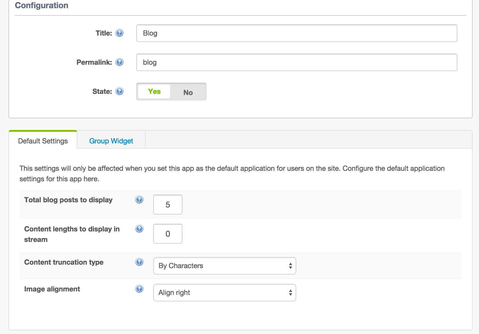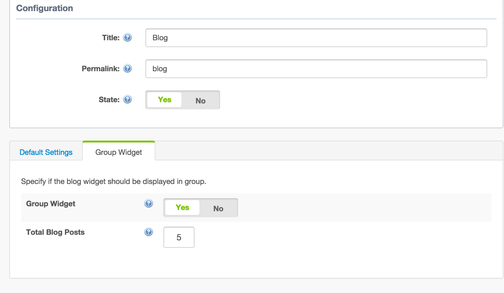 * Displays blogs in group widget.