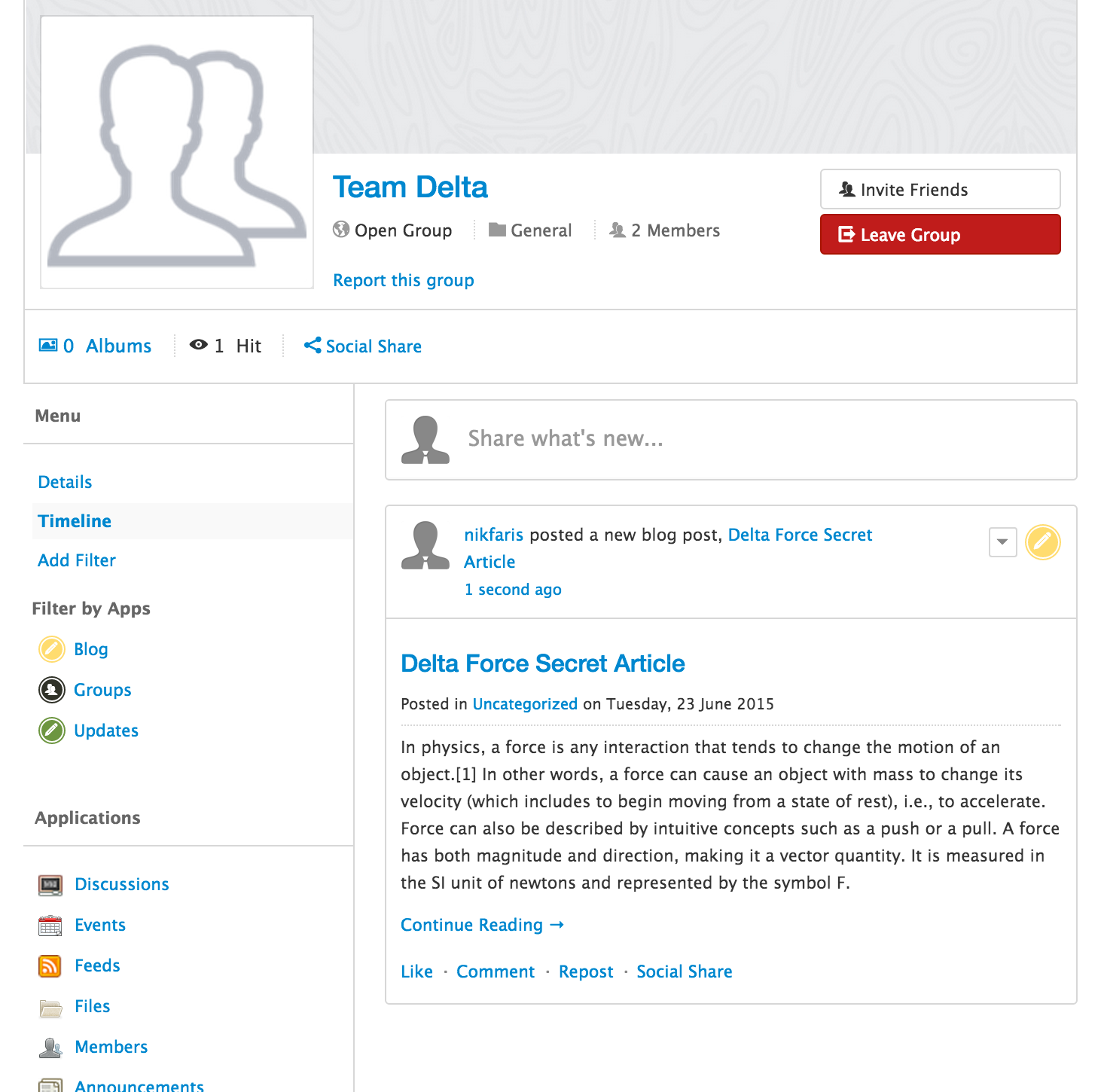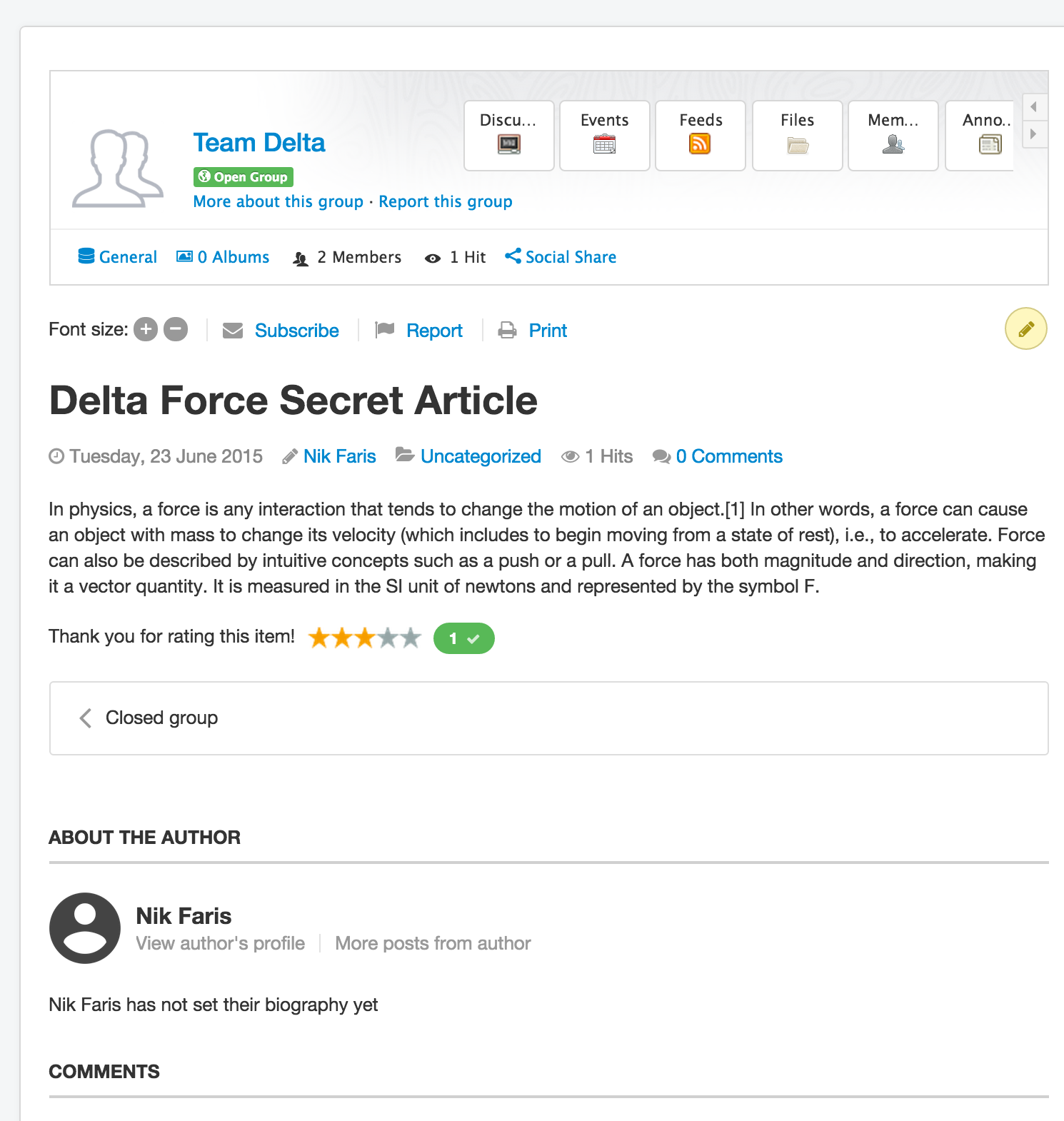 * Post a blog through EasySocial's group story panel.