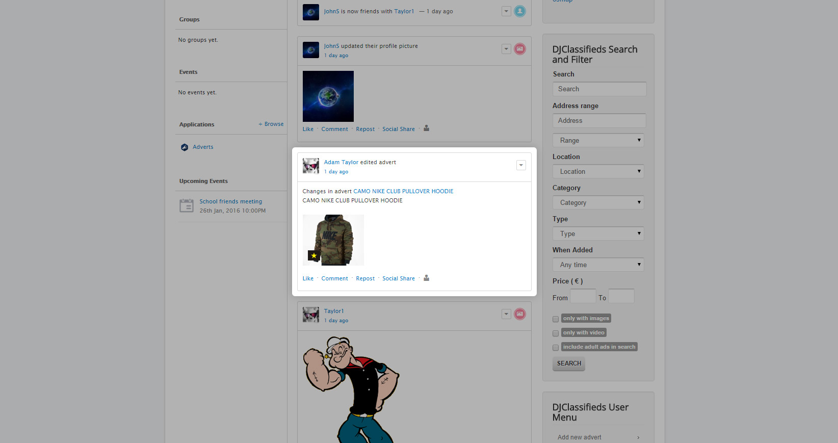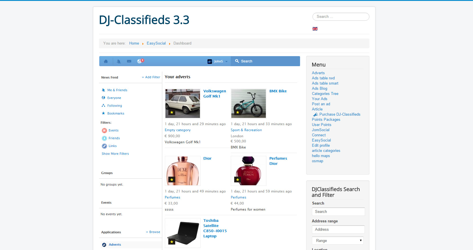 Also allows adding notifications to event stream about new DJ-Classifieds advert [EasySocial Streaming plugin for DJ-Classifieds must be installed].