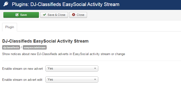 Using EasySocial Streaming plugin gives the possibility display in EasySocial stream, notifications about new adverts from DJ-Classifieds Joomla classifieds extension.