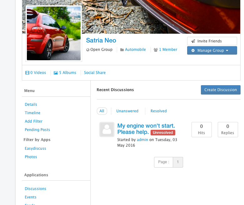 This app will enable the option to create your discussion from any of your EasySocial’s group pages. The created discussion will be linked to your EasyDiscuss’s group page. Only supports EasyDiscuss 4.x. and EasySocial 2.1 and above
