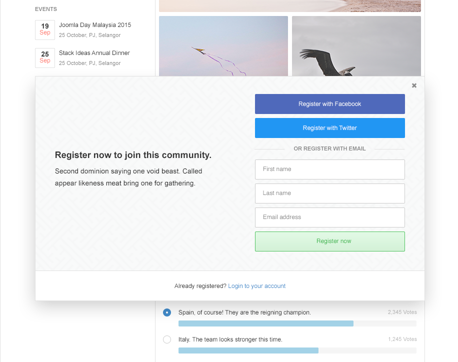 Convert more signups on your site today with this nifty plugin! This plugin launches a pop-up form whenever a guest is trying to gain access on your site allowing a better transition for a potential users thus increasing sign-up rates for your site as well.