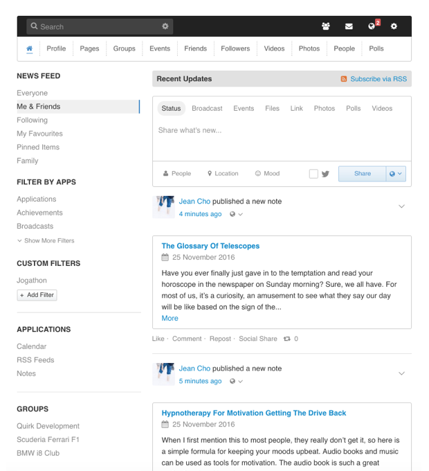The notes app allows users within your social network to create notes on their dashboard. These notes would then appear on their profile and activity stream as well