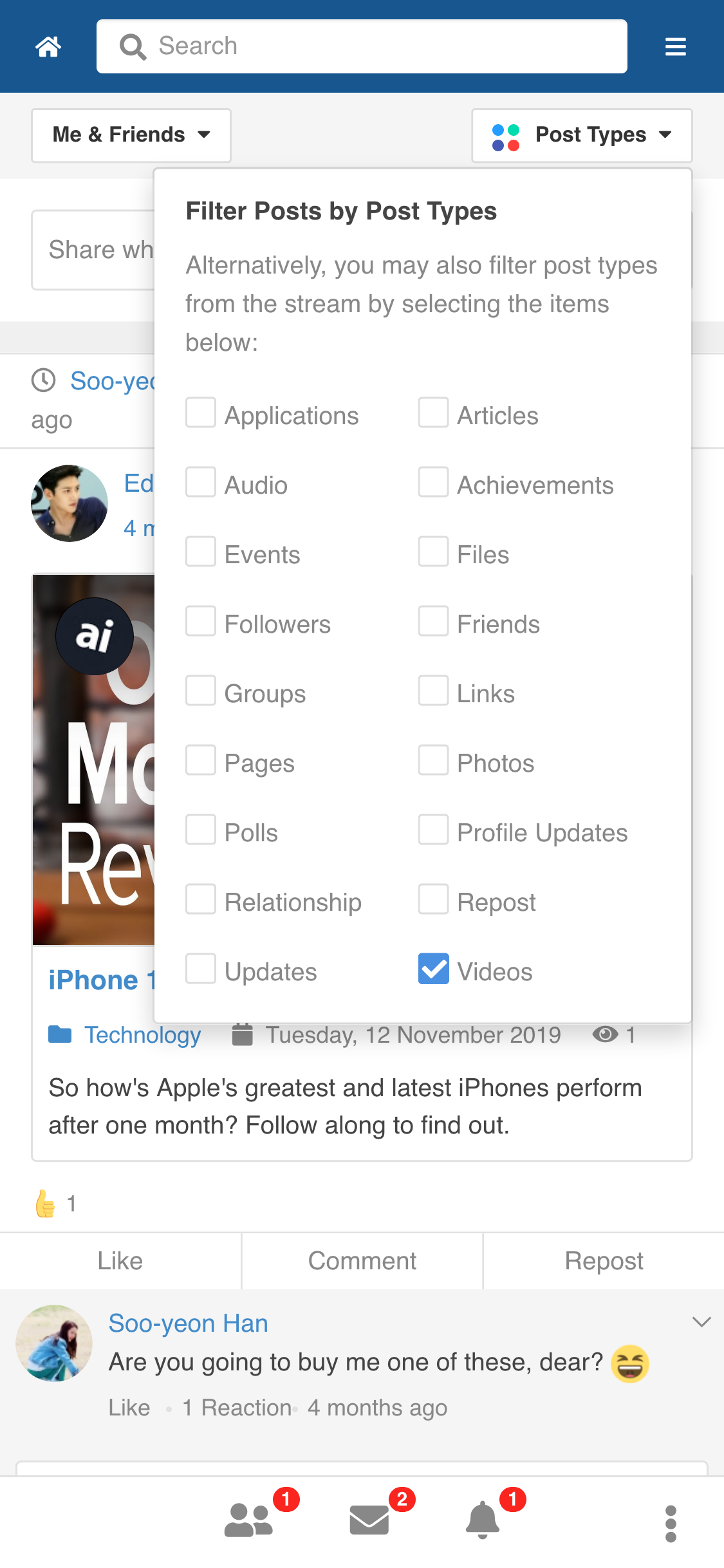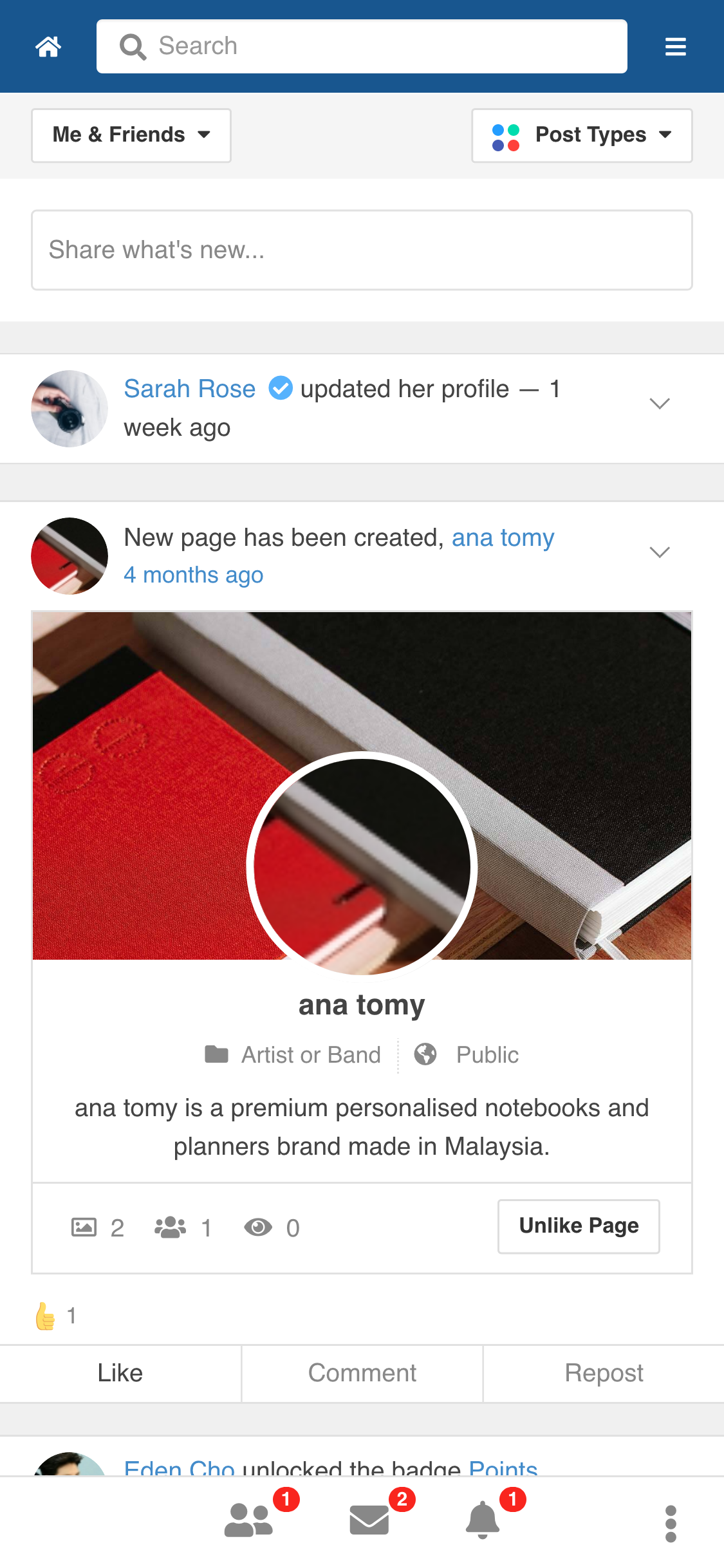 Hi Michel, thank you for your feedback and your suggestion. Currently this template is simply to render your website like mobile-like layout. You may post your feature request at EasySocial's feature request section at https://stackideas.com/voices/easysocial