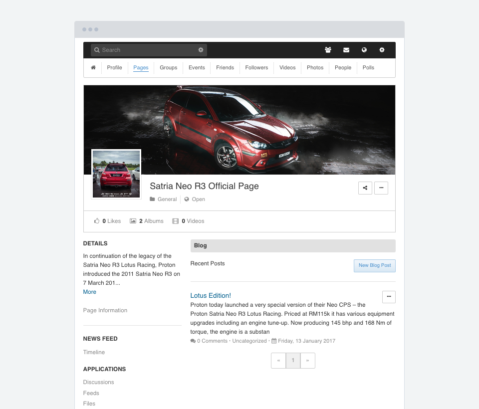 These posts would appear on the activity stream and also under a blog section within the Page itself.