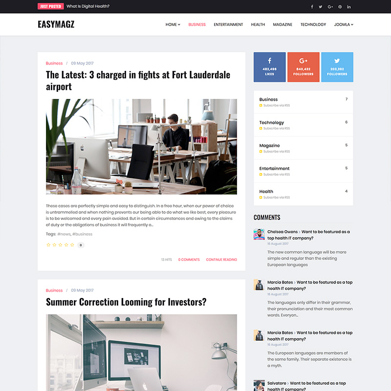 Bold EasyMagz is the latest version of our information-packaged templates for any reporters, publishers, and journalists to bring newest stories to the public eye. The EasyMagz template is excellent for any newspaper, magazine, publishing or review sites. It's perfectly suited for any news niche such as tech, business, politics, sports, fashions, games, entertainment, health and much more.