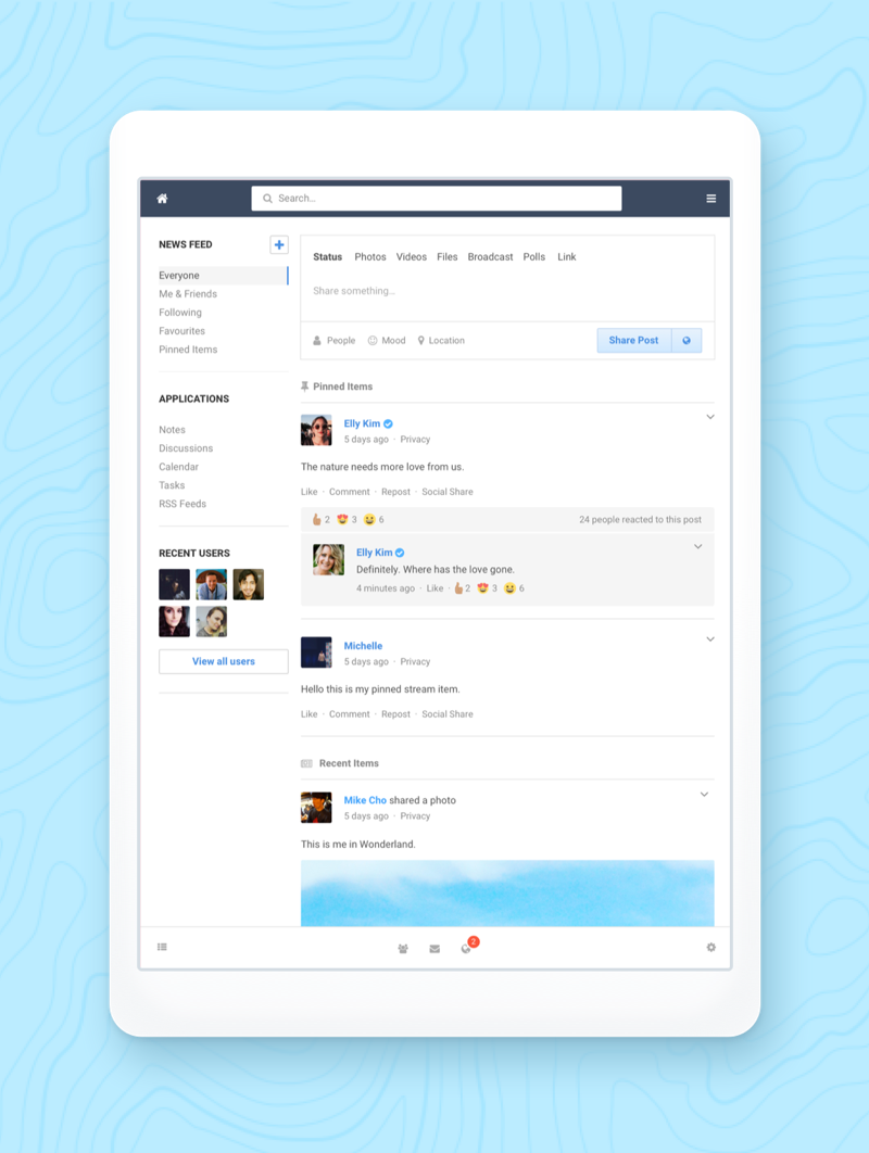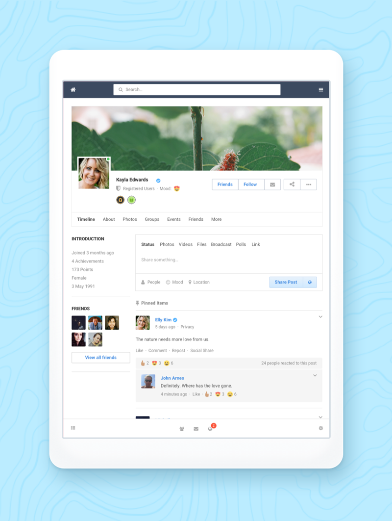 Renders all pages in EasySocial 2.1.x beautifully on your social site. Powerful, fast performance, responsive designed and optimized perfectly for any tablet devices. Tablet template mirrors the user experience in EasySocial the same as the desktop powered EasySocial.