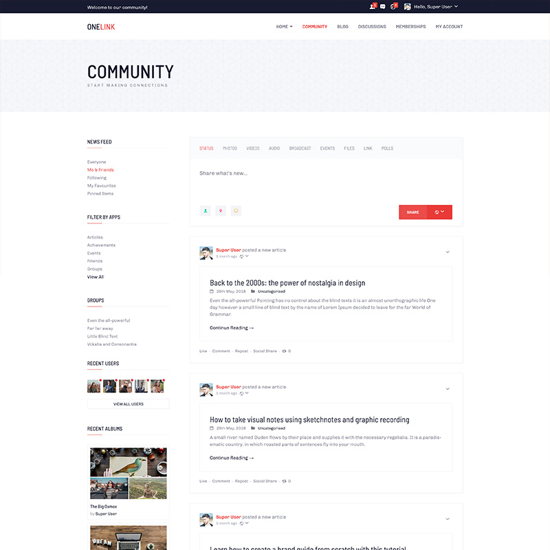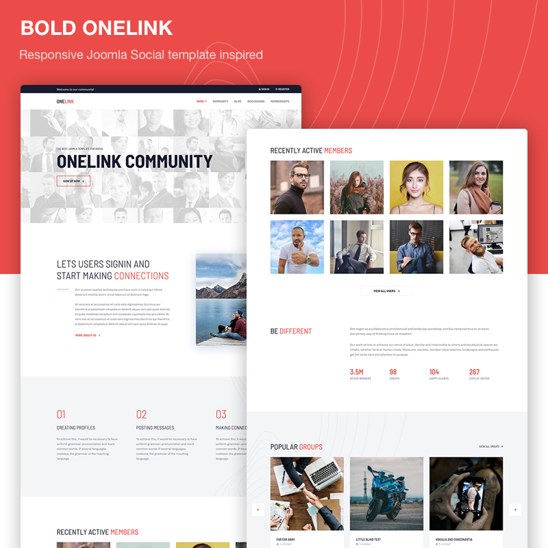 Bold Onelink is a responsive social network Joomla template build to power sites with multiple users and provide community content sharing