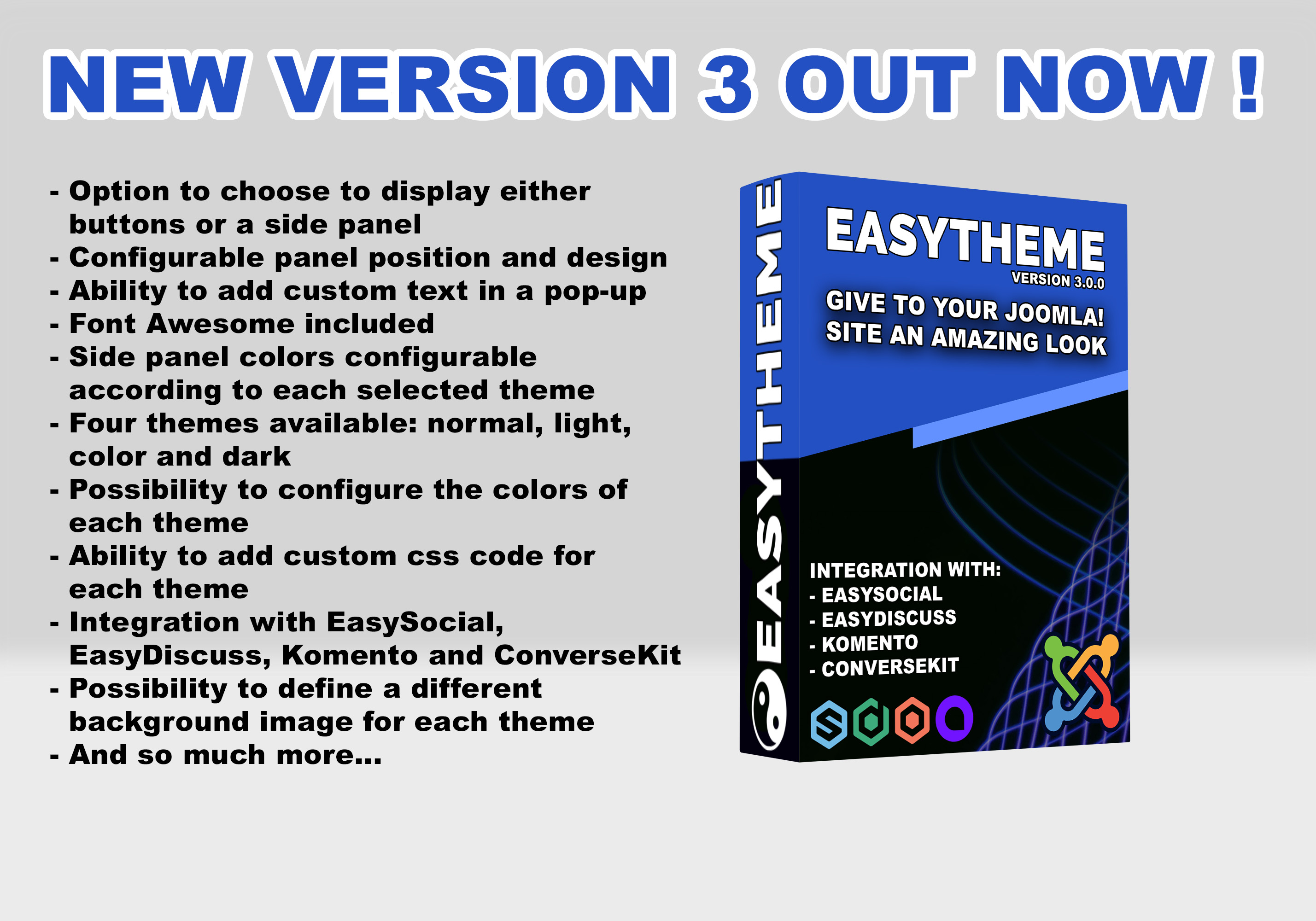 - Integration with EasySocial, EasyDiscuss, Komento and ConverseKit