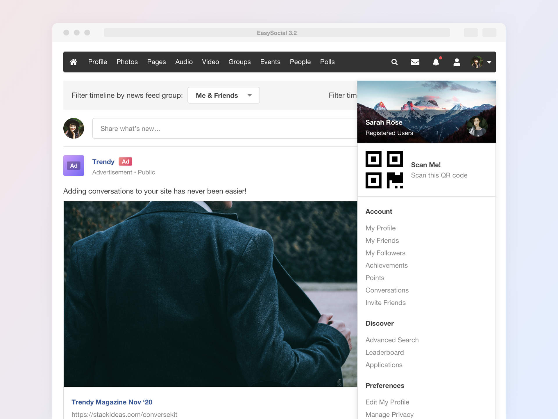 This module is responsible to generate QRCode that can be scanned by the mobile app for EasySocial. By scanning the QRCode, users can automatically login to the site without having the need to enter their username or password.