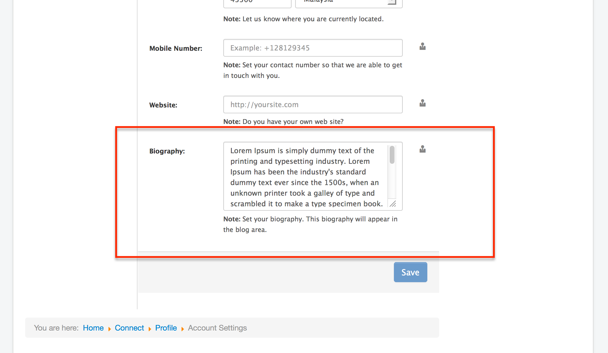 Displays the biography form when user registers on the site. This field app allows you to centralize the user's form so user's only needs to modify their profile within EasySocial