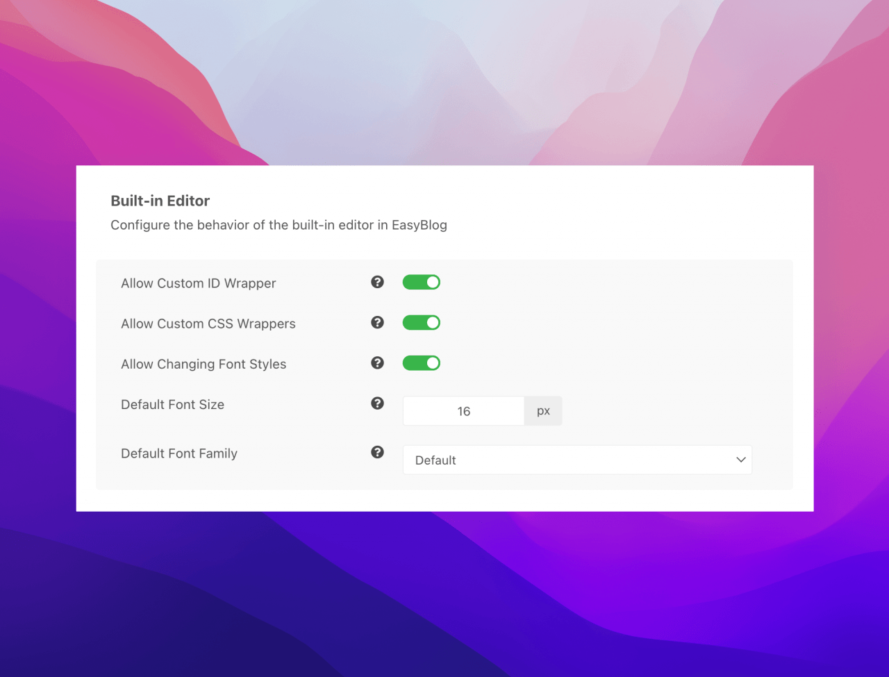We have also added new settings to allow you to define the default options for the composer. This way, you can enforce a specific font size to be applied to the entire blog without making any other changes.