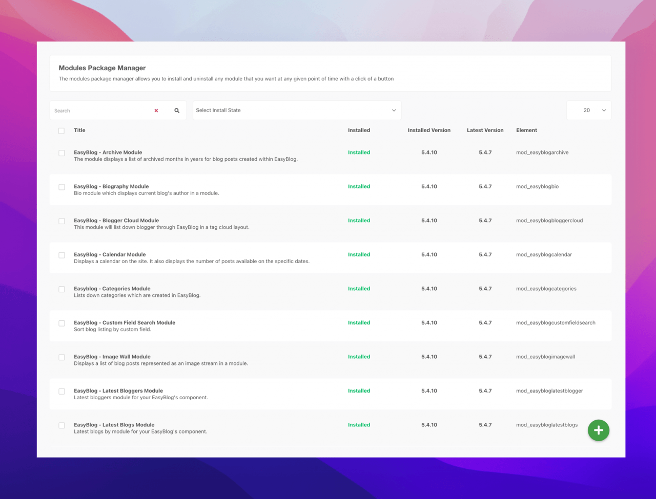 With the new module package manager, you can install or remove any EasyBlog modules right from the back-end of EasyBlog.