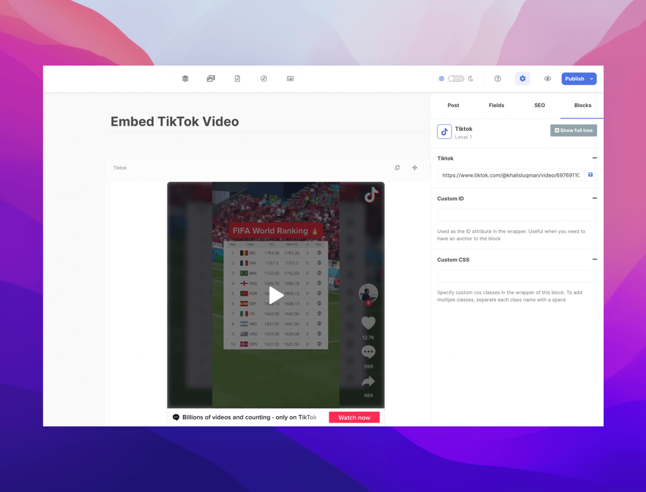 With the new TikTok block, you can now embed them right on your post.