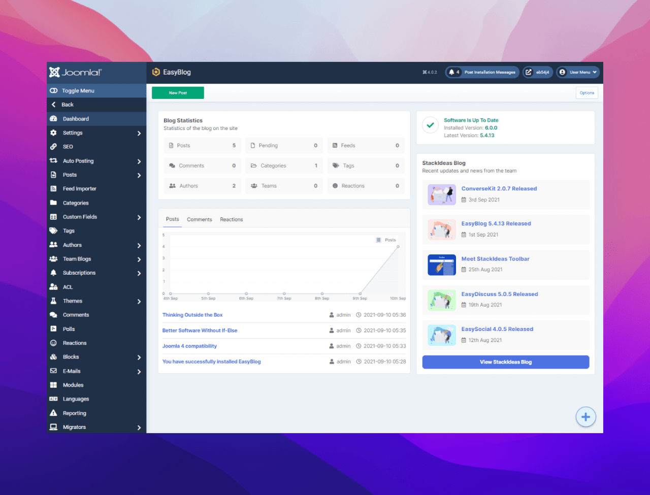 We have also updated the compatibility and EasyBlog 6 works across Joomla 3.9, 3.10 and Joomla 4.