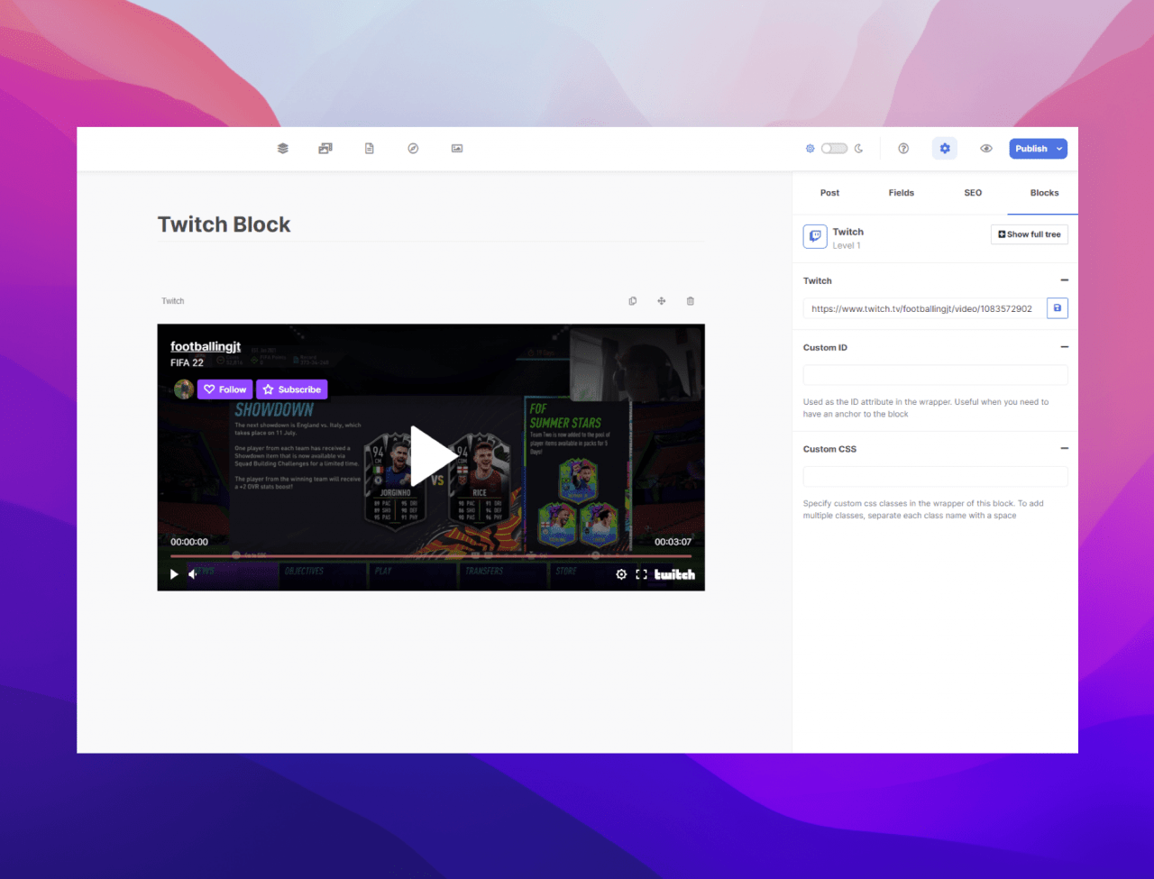 The new Twitch block allows you to embed videos from Twitch.