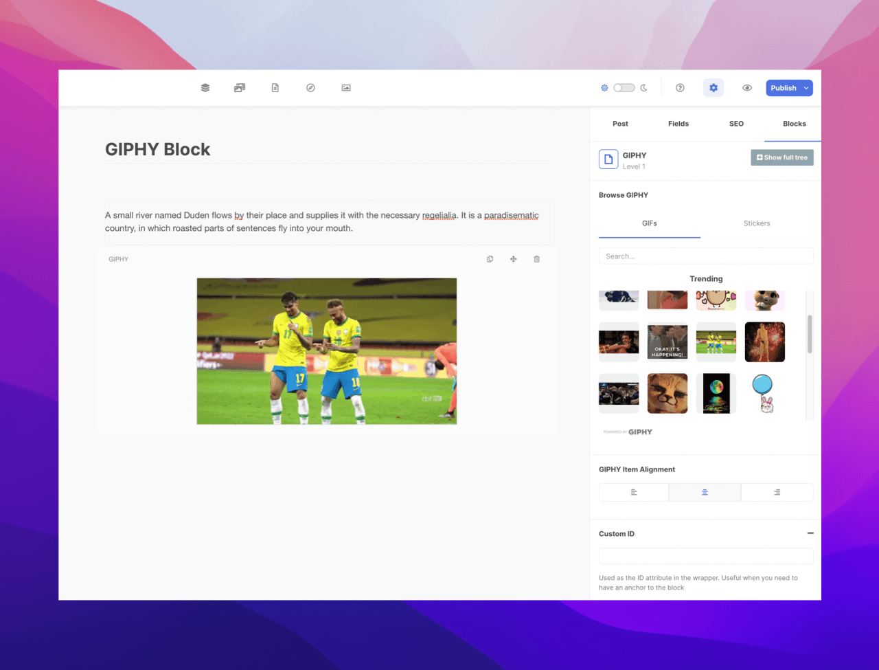 Insert puns on your blog post with our brand new GIPHY block.