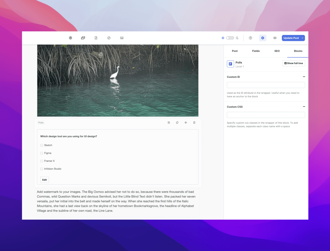 Our team has also added an extensive polls system in EasyBlog which allows authors to create polls. With the new polls functionality, you can now embed polls in your posts using the new polls block.