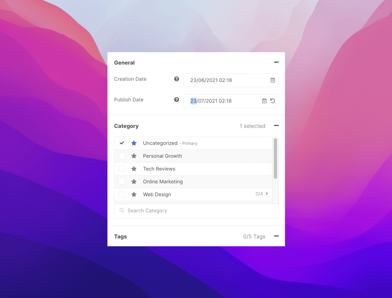 To refine search results, we have enhanced our very own search to allow filtering by tags and the ability to sort results. The category selection has also been redesigned from the ground up for better user experience navigating a large category tree. The search also includes new settings which you can toggle to allow searching for archived posts.