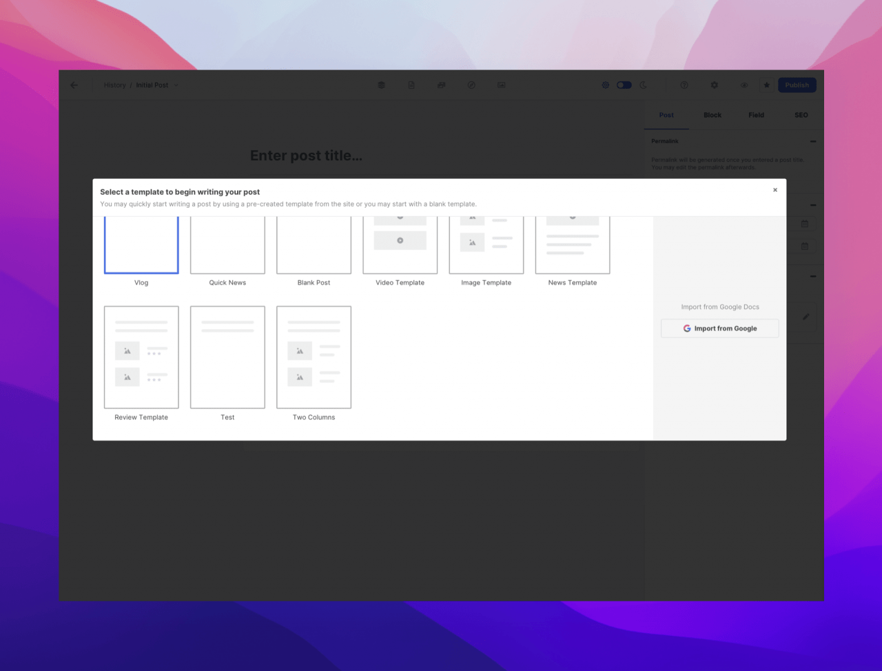 We have also added the ability to import your documents from Google Drive too! This allows you to compose your posts on Google Drive using Google Docs and import them easily when you are ready.
