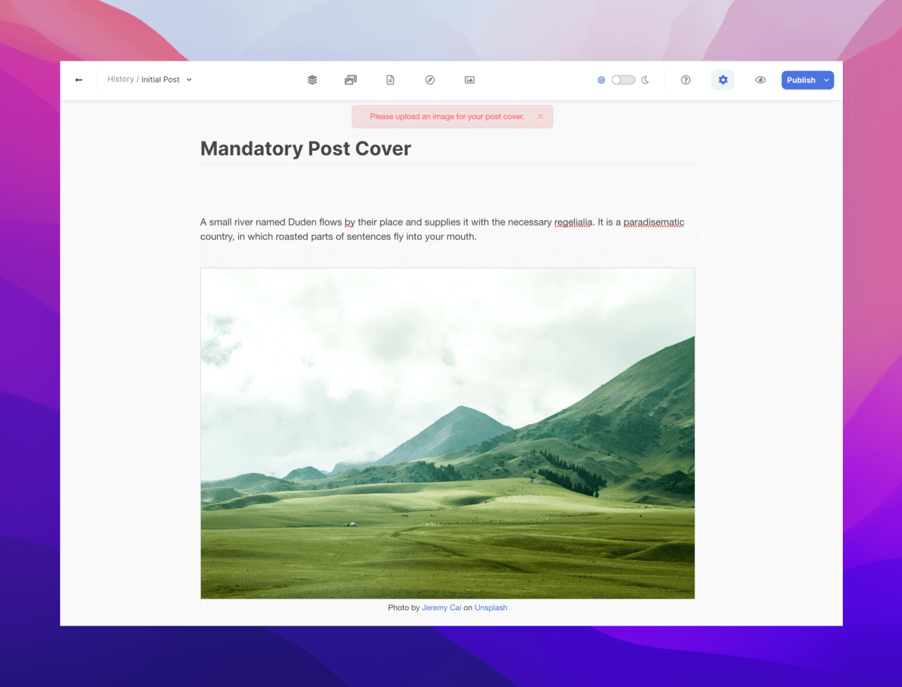 In the composer, we have also added new functionality that will require authors to include a post cover with their posts.