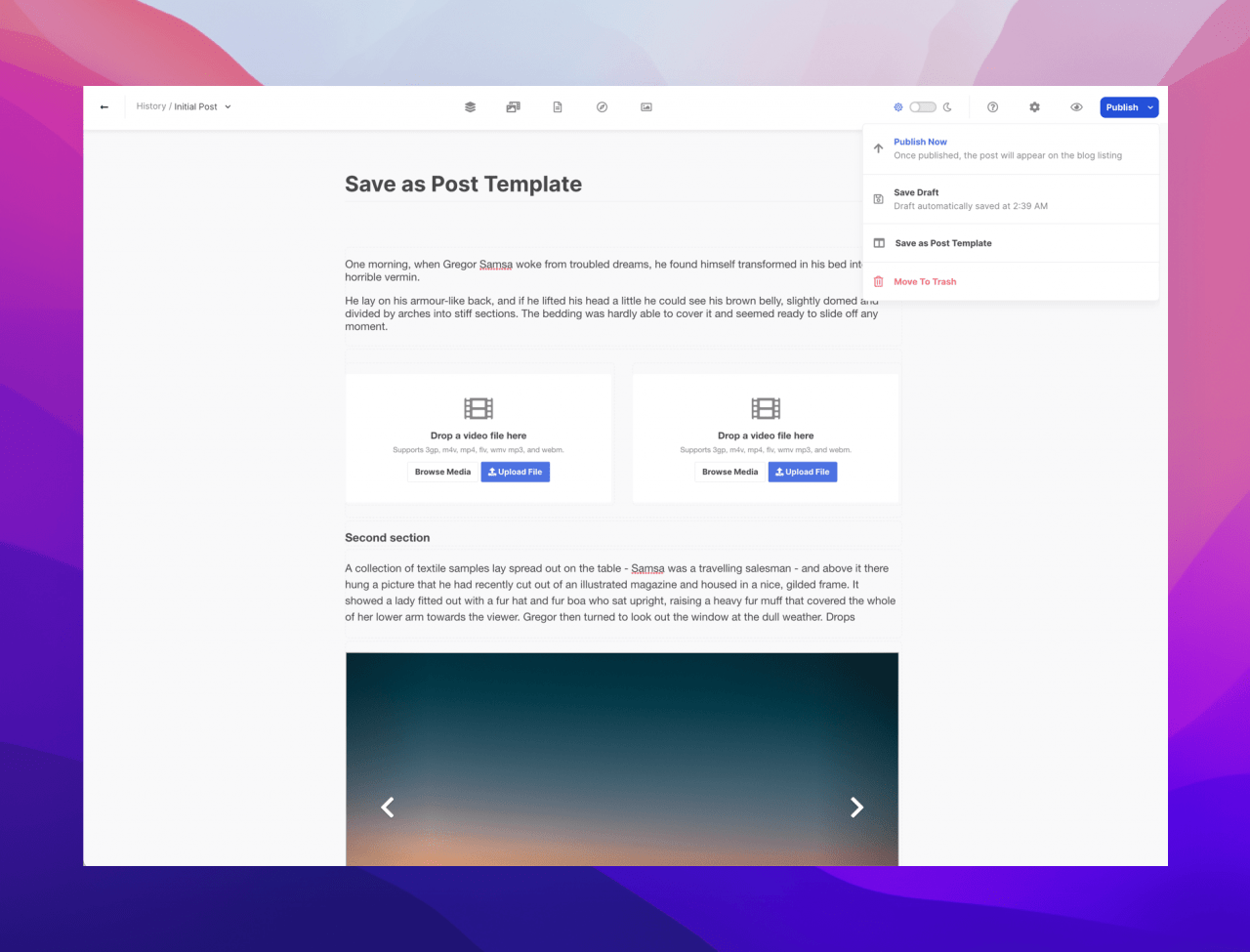 Video as post cover
