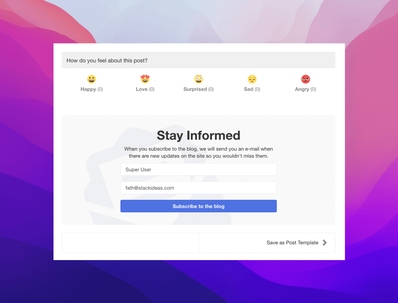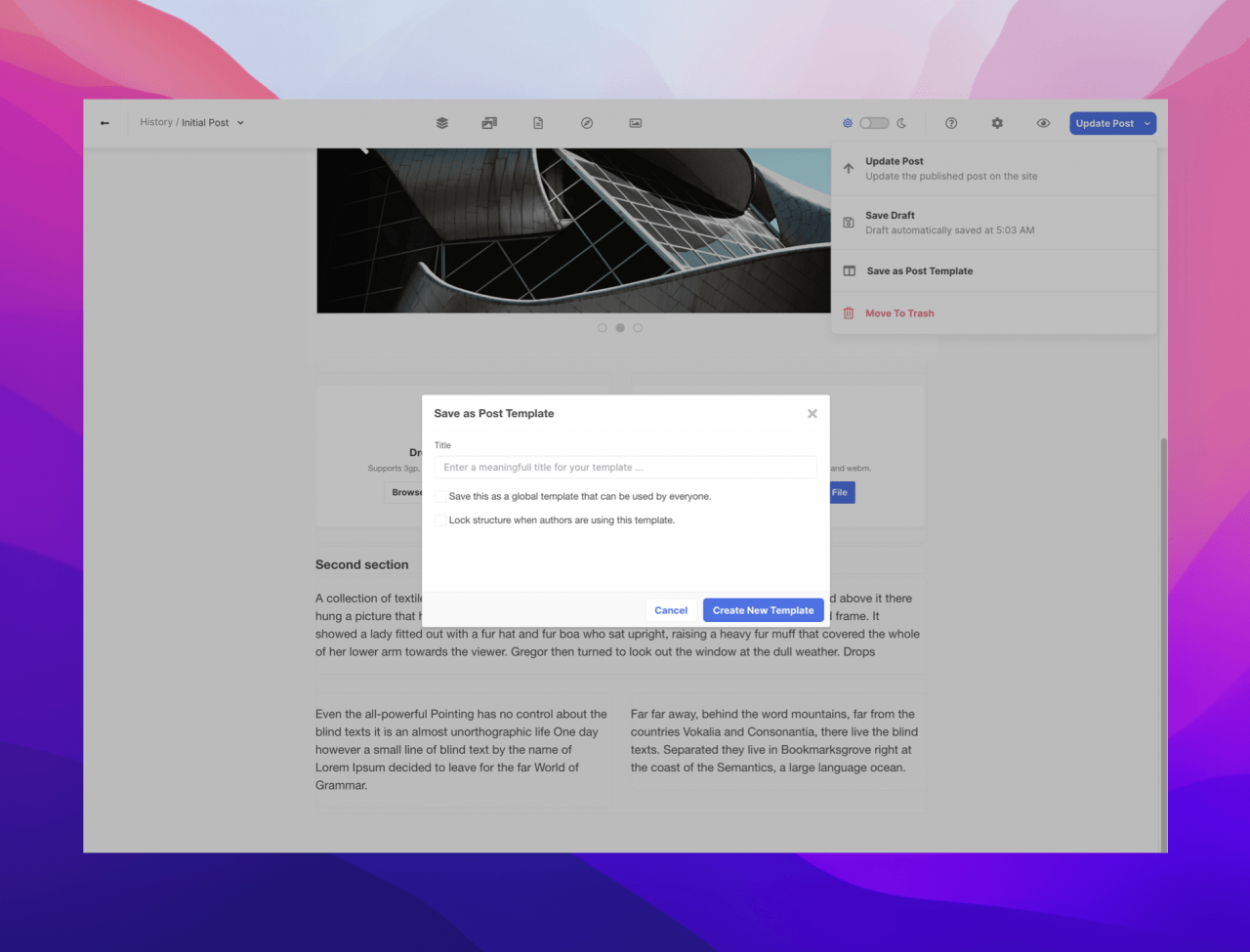 One of the most annoying parts about post templates is that you always have to create them from the post template section. With this new update, you can now save a post that you are composing halfway through as a post template.