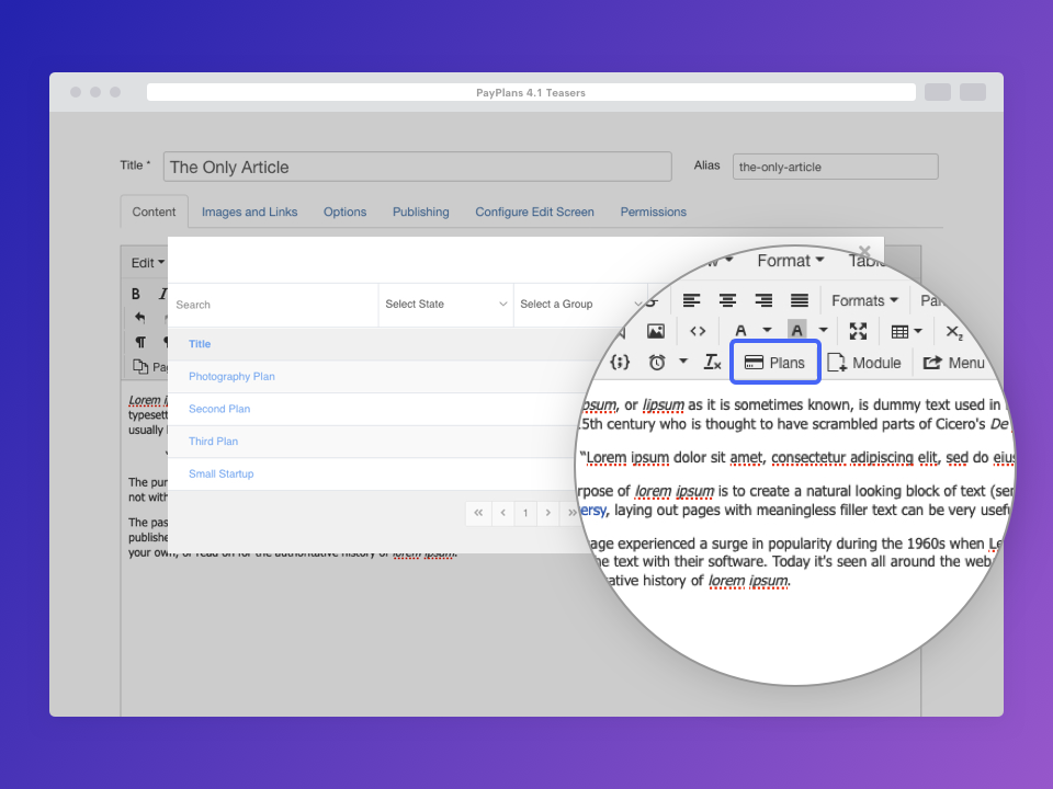 With the Joomla Editor Plug-in, administrators can now insert a link into the article. This makes it super convenient for users to subscribe to plans. By just clicking on the link in the content, they will be redirected to the checkout page.
